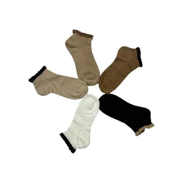 جوراب ساق کوتاه زنانه مدل لبه گیپور بسته 5 عددی
