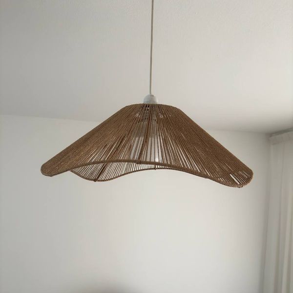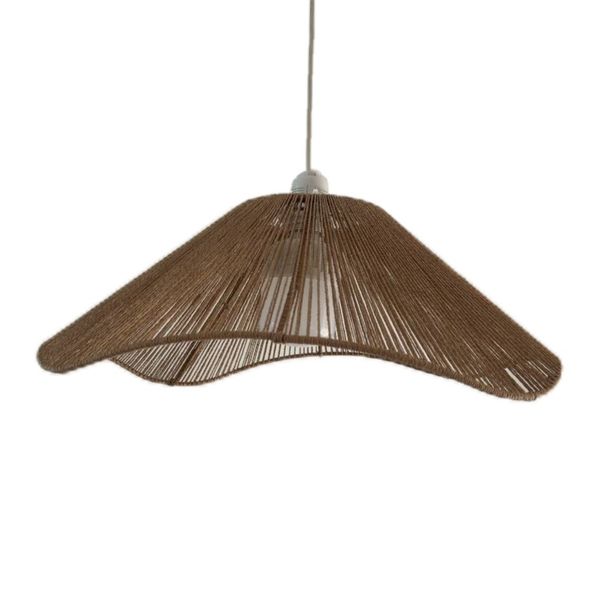 بافته شده توسط نخ وارداتی رافیا بسیار ظریف و زیبا این کار نسبت به نخ مکرومه بسیار ظرافت بیشتری دارد و نزدیک به حصیر می‌باشد و همین موضوع باعث زیبایی بستر میشود محصول با سیم و سرپیچ گریف دار جهت نصب آسان مطابق عکس ارسال میشود محصول بدون لامپ ارسال میشود و لامپ در تصویر فقط جهت نشان دادن مدل لوستر تهیه شده است قطر 60